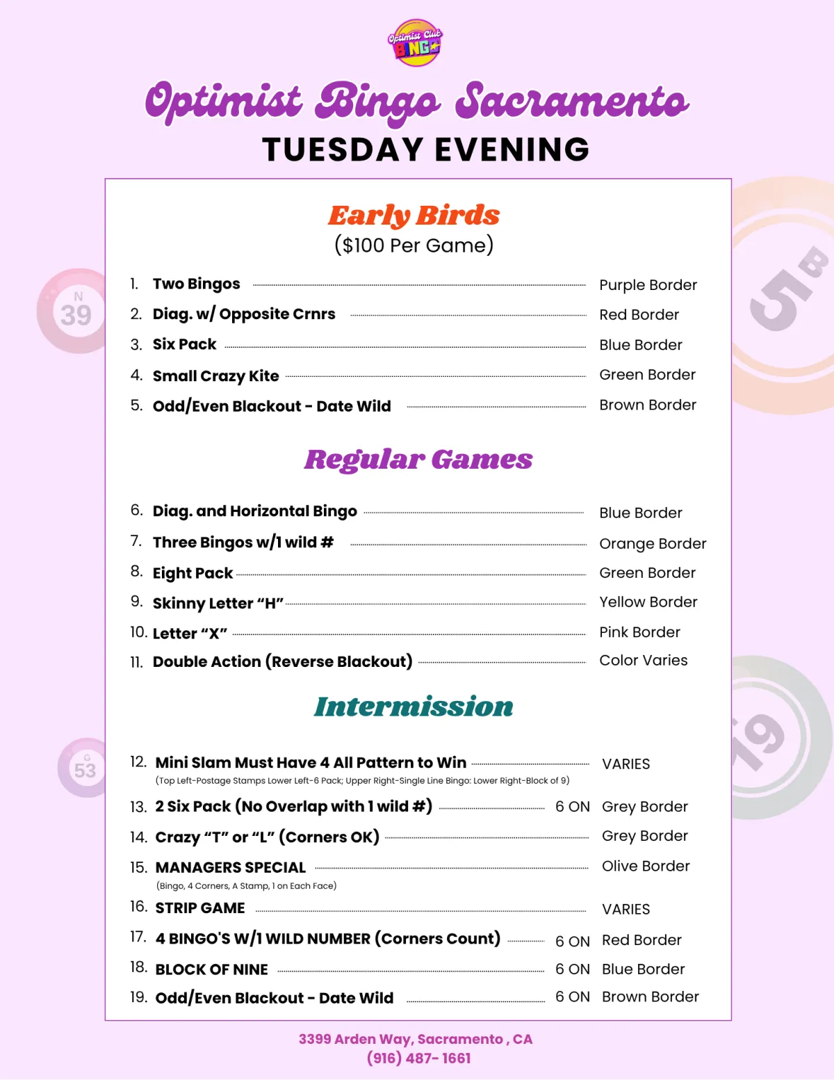 REGULAR GAMES: $250